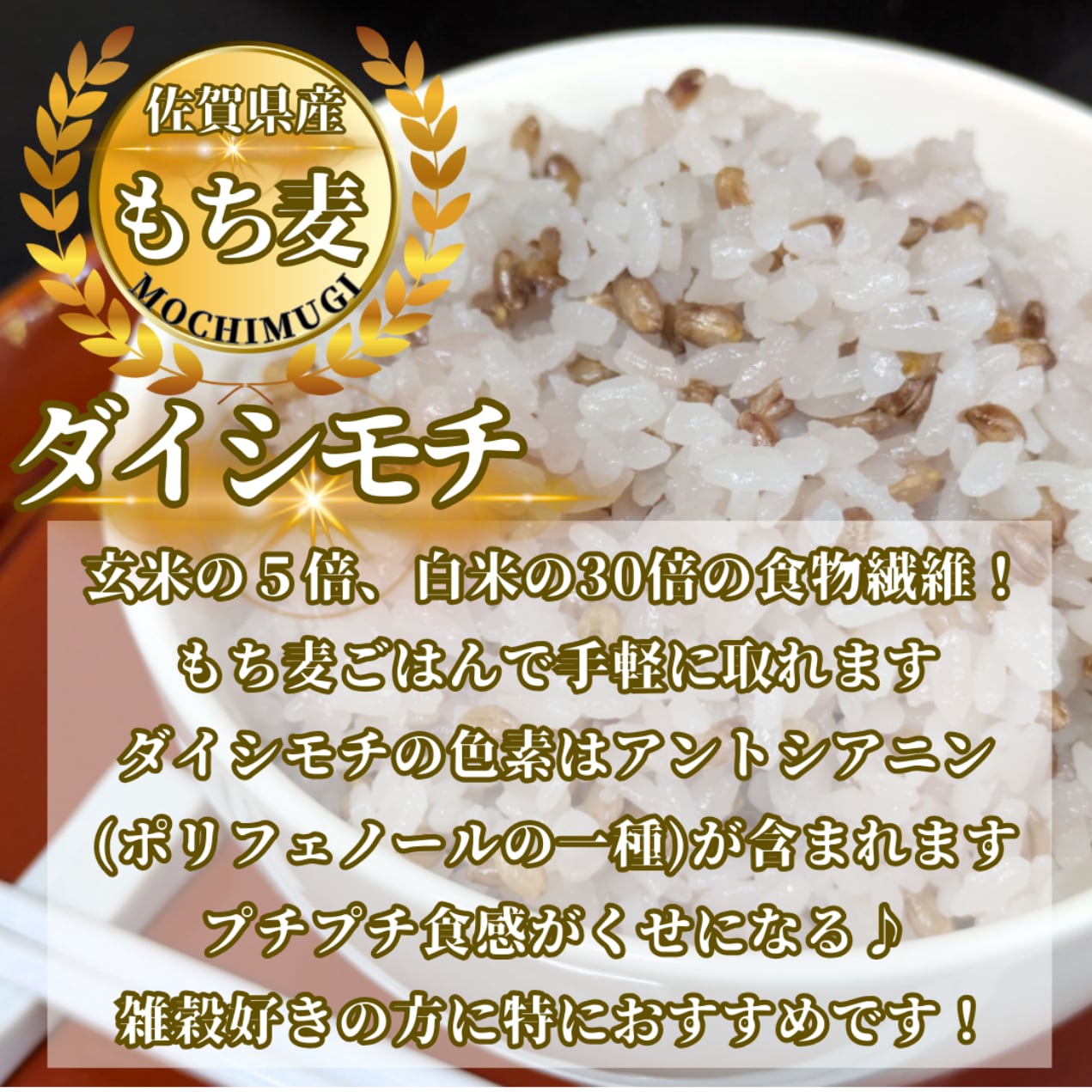 ■小麦アレルギーをお待ちの方はもち麦でもアレルギー症状が出る場合がございます。十分、ご注意ください。